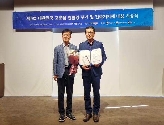 올해로 9회째를 맞는‘대한민국 고효율·친환경 주거 및 건축기자재 대상’은 신재생에너지 도입, 고효율 기자재 사용 등을 통해 건축물의 에너지효율을 높인 공공기관 등을 대상으로 시상하고 있다.