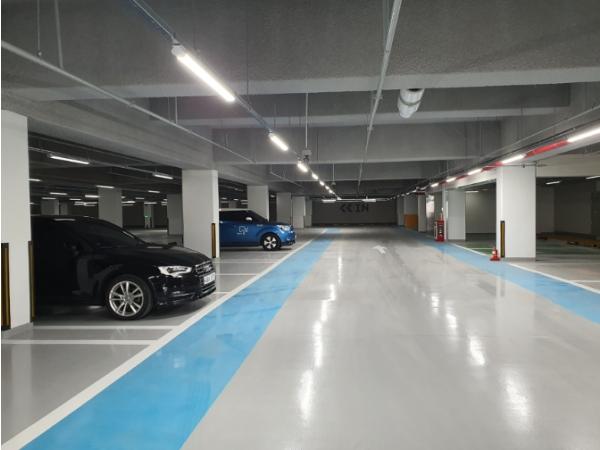 지하 주차장 진출입구에는 물막이벽을 설치해 집중호우 시 빗물이 주차장으로 유입되는 것을 차단하여 주차된 차량의 침수를 사전에 방지한다. 또한 전기차 주차구역(6면)에는 화재시 확산 방지를 위해 방화스크린셔터 설치 및 화재 초기진압을 위해 질식 소화포를 구비했다.