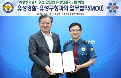대전유성경찰서는 지난 8일 대전 유성구와 함께 유성경찰서 중회의실에서 이상동기범죄 없는 안전한 유성만들기를 위하여 업무협약식을 가졌다.