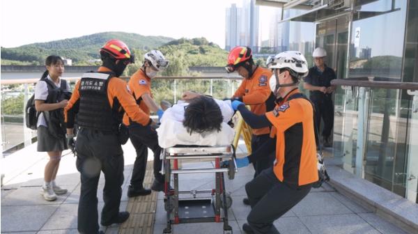 훈련에는 용인소방서, 한국승강기안전공단, 승강기 유지관리업체 등 유관 기관과 지역에서 승강기를 관리하는 담당자, 시민 등 300여 명이 참여했다.