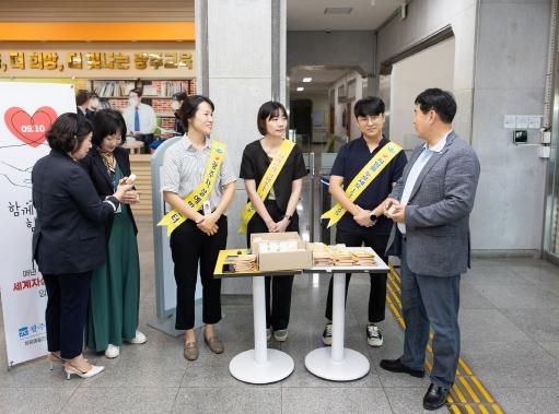광주시교육청이 지난 8일 ‘세계 자살예방의 날’을 맞아 본청 본관 현관에서 ‘우리 모두 쓰담쓰담’ 캠페인을 전개했다.
