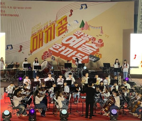 동두천양주교육지원청은 9월 8일 오후 6시부터 양주시 유양동 양주 별산대 놀이마당 특설무대에서 2023년도 동두천양주 마을 속 매.끼.꿈 학생 예술 한마당을 개최했다.