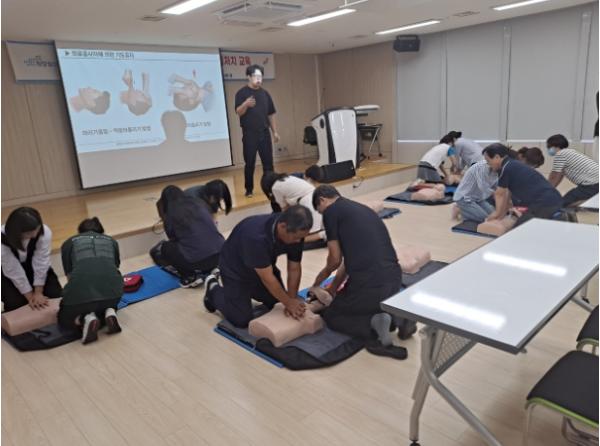 교육내용은 심폐소생술 및 자동심장충격기(AED) 사용법에 대한 이론 학습 및 실습이다. 자동심장충격기(AED) 관리책임자에게는 자동심장충격기 점검방법 등 관리책임자로써 숙지해야할 내용을 추가적으로 교육한다.