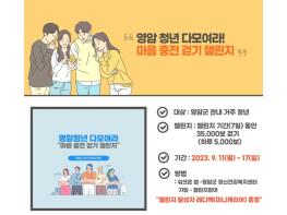 챌린지 이외에도 영암군은 청년 마음 건강을 위해 대학 축제장을 찾아 우울증 검사, 고위험군 마음건강주치의 상담을 진행하기로 했다.