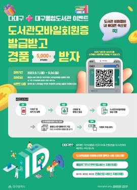 대구광역시는 9월 11일부터 공공서비스 플랫폼인 다대구 회원과 대구통합도서관 회원을 대상으로 문화상품권 증정 이벤트를 진행한다.