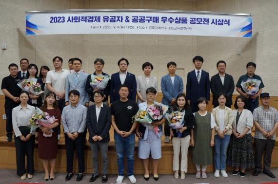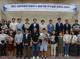 이어서 ‘2023 사회적경제기업 공공구매 우수상품 공모전’ 시상식에서는 ㈜더루트컴퍼니의 ‘감자유원지 포파칩 3종세트’가 대상을, 협동조합연과미소의 ‘건강한 우리기름세트’가 최우수상을, ㈜온세까세로의 ‘원주 쌀 샌드’가 우수상을 각각 수상했으며, 정선아라리한과농원(영)의 ‘정선 약도라지 착즙 원액 스틱’, 꽃나드리협동조합의 ‘꽃차 종합선물세트’, ㈜한주에프앤비의 ‘힘내라 에너지바’, 용대2리주민백담마을영농조합법인의 ‘황태종합선물세트D’, 농업회사법인 벌과사람의 ‘아카시아꿀’이 장려상을 수상했다.