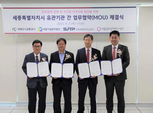 세종도시교통공사는 지난 7일, 세종시설관리공단, 세종테크노파크, 세종창조경제혁신센터와 다자간 업무협약을 체결했다고 밝혔다.