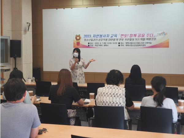 태백시청소년상담복지센터는 지난 7일 태백시산소드림도서관 다목적실에서 '멘토! 함께 꿈을 꾸다'라는 주제로 2023년 자원봉사자 교육을 진행했다.
