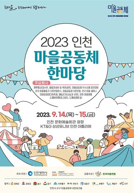 인천광역시가 9월 14일부터 9월 15일까지 인천문화예술회관 야외광장과 KT&G 상상유니브에서 2023 인천 마을공동체 한마당을 개최한다고 밝혔다.