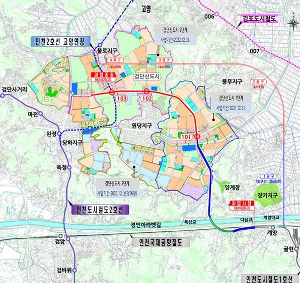 계양역부터 검단신도시를 잇는 인천도시철도1호선 검단연장선 건설사업은 총 길이 6.825㎞로, 2017년부터 2025년까지 총사업비 7,277억 원이 투입되는 공사다. 현재 공정률은 75%이다.