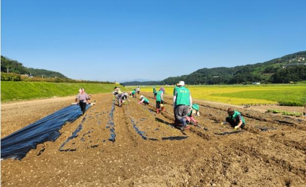 고현면 새마을지도자협의회·부녀회는 지난 9일 고현면 대사리 뚝방길 새마을 경작지에서 회원 25여명이 참여한 가운데 이웃 사랑 김장김치 나눔을 위한 ‘배추 모종 심기 행사’를 실시했다.