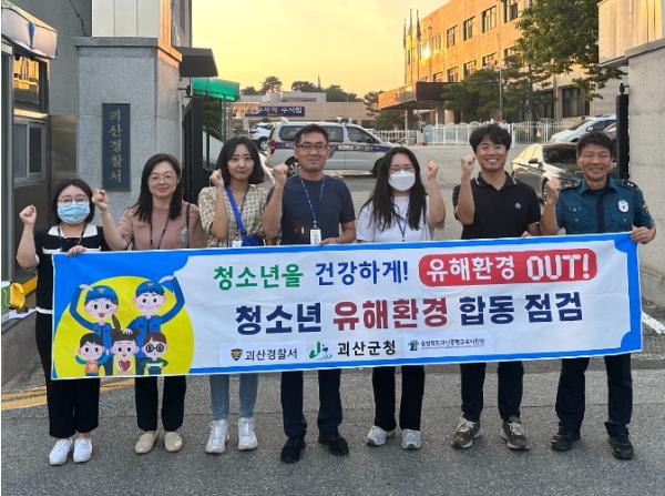 충북 괴산군이 지난 11일 청소년 일탈행위 방지와 유해환경 차단을 위해 괴산경찰서, 괴산증평교육지원청과 함께 괴산읍 내 유해업소 합동점검 활동을 실시했다.