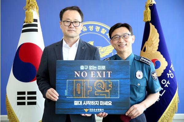 유성경찰서는 지속적인 ‘NO EXIT’ 캠페인을 추진하면서 시민과 기관 단체를 대상으로 마약 예방을 위한 홍보를 적극적으로 펼치고 있다.