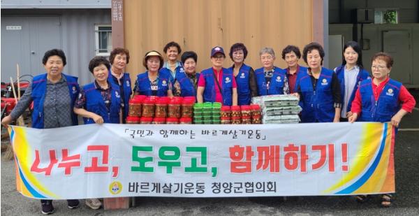 바르게살기운동 청양군협의회가 지난 14일 청양군농업기술센터 가공실습실에서 군내 취약계층을 위한 밑반찬 나눔 봉사활동을 가졌다.
