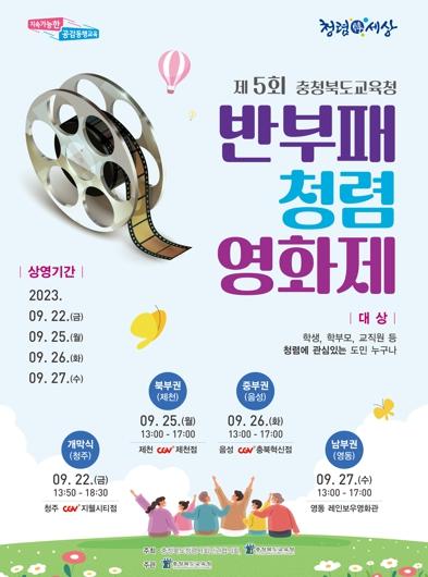 충청북도교육청은 22일부터 27일까지 충청북도교육청과 충청북도 청렴사회 민관협의회가 공동 주최하고 충청북도교육청이 주관하는 '제5회 충청북도교육청 반부패 청렴 영화제'를 개최한다.