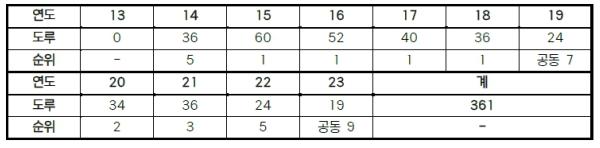 또한, 15일까지 개인 통산 361 도루를 기록하며 역대 10위, 현역 선수 중에서는 2위에 올라있다.