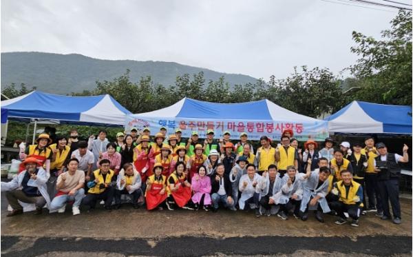 (사)울주군자원봉사센터 울주군 전문자원봉사단협의회(회장 임종태) 소속 12개 단체가 16일 울주군 범서읍 지지회관에서 주민 편의 증진을 위한 마을통합 자원봉사활동을 실시했다.