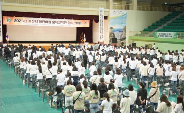 충남 서산시가 16일 서산시민체육관에서 보육교직원 800여 명이 참석한 가운데 ‘제15회 서산시 어린이집 보육교직원 한마음대회’를 개최했다고 밝혔다.