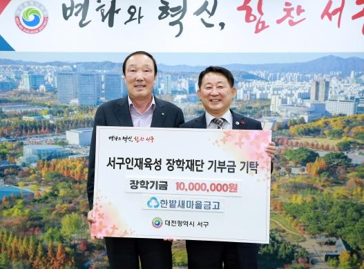 대전 서구 인재육성장학재단은 한밭새마을금고로부터 장학기금 1,000만 원을 기탁받았다고 17일 밝혔다.