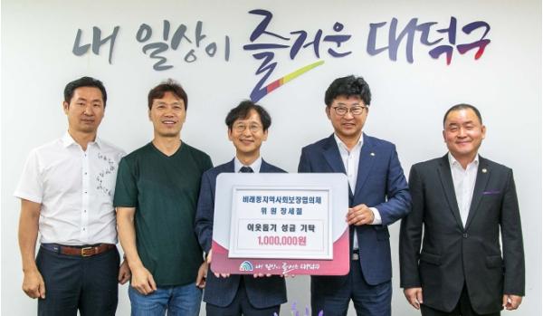 최충규 대덕구청장은 “지역주민을 위한 따뜻한 관심에 감사드리며, 지원해 주신 성금은 어려운 이웃을 면밀히 살펴 꼭 필요한 곳에 사용하도록 하겠다”고 말했다.