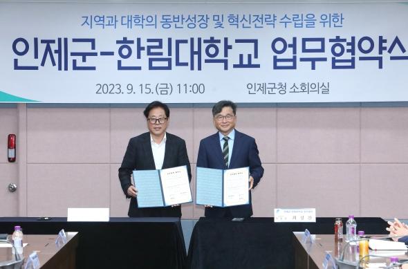 인제군과 한림대학교는 지난 15일 인제군청 소회의실에서 지역 혁신 및 발전을 위한 상호협력 업무협약을 체결했다.