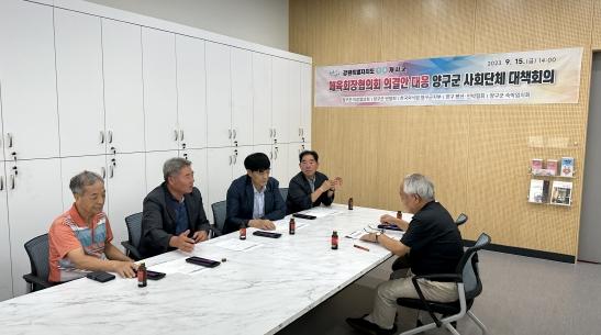 양구군 사회단체에서는 최근 영월에서 열린 강원특별자치도 시군체육회장협의회 간담회에서 스포츠재단 설립 지자체에 불이익을 주겠다고 결정한 안건과 관련해 지역 상경기에 치명적인 타격이 우려되자 지난 15일 대책 회의를 개최하고 이를 통해 강력한 대응 체제에 돌입하기로 했다.