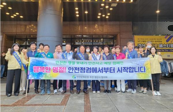 경산시는 15일 NC백화점 경산점, 경산공설시장에서 안전문화운동에 대한 의식을 제고하고 이를 실생활에서도 실천해 안전사고 없는 추석 명절을 만들기 위한 안전문화운동 캠페인을 전개했다.
