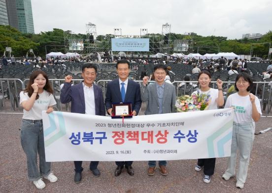 서울 성북구가 16일 사단법인 청년과미래(국회사무처 소속) 주관 “2023년 청년친화헌정대상”에서 우수 기초자치단체 정책대상을 수상했다. 이로써 2019년(종합대상), 2021년(소통대상)에 이어 세 번째 선정의 영예를 안게 됐다.
