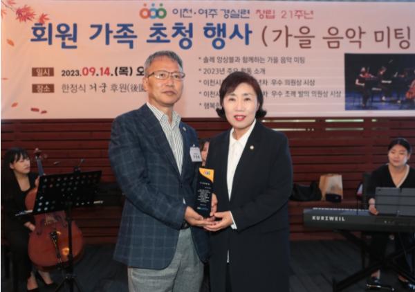 이천시의회 송옥란 의원(산업건설위원장)이 14일 이천·여주 경제정의실천시민연합(경실련)에서 주최한 시상식에서 ‘우수 시의원상’을 수상했다.