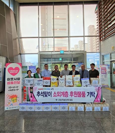지난 15일 교동 통장협의회를 비롯해 주민자치위원회, 바르게살기위원회, 새마을남녀지도자회, 지역사회보장협의체, 체육회는 이번 추석을 맞이해 백미,라면,생필품 선물세트 등 약360만 원 상당의 위문품을 교동 행정복지센터에 기탁했다.