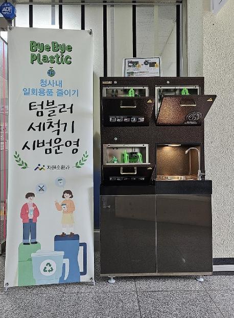 아산시는 청사 내 2개소(의회동 2층, 별관 4층)에 텀블러 세척기를 시범 운영 중이라고 밝혔다.