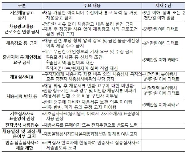 특히 이번 점검은 채용 공고상 혼인 여부, 부모의 직업?재산과 같이 직무와 무관한 개인정보를 요구하거나 채용서류의 보관?반환?파기 절차를 안내하지 않는 경우 등 청년들의 문제제기가 많은 온라인 채용공고에 대해 채용절차법 위반 여부를 집중 점검한다.