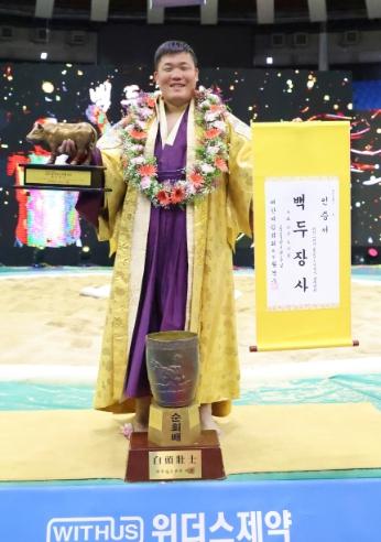 증평군청 인삼씨름단 소속 천하장사 김진 선수가 '위더스 제약 2023 추석장사씨름대회'에서 정상에 등극했다.