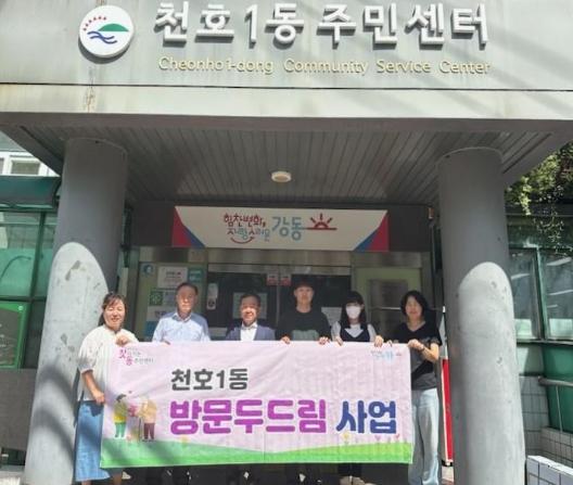 강덕식 천호1동장, 복지담당 공무원, 방문간호사 3인 체제로 운영하는 ‘방문두드림’은 매주 목요일 고시원, 지층 등에 거주하는 주거취약 1인가구 대상자 2가구를 방문하여 건강상태, 사회적관계망 형성 등을 종합적으로 파악하고 수요자의 욕구에 맞는 복지서비스를 연계하는 특화사업이다.