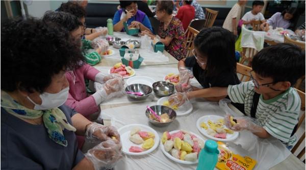 인천시사회서비스원(원장?황흥구) 서구다함께돌봄센터 2호점은 돌봄센터 이용 아동 10여 명과 동네 노인정을 이용하는 어르신들이 함께 한가위 송편 빚기 행사를 진행했다고 18일 밝혔다.