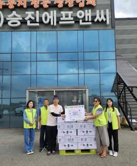 한편, ㈜우리승진식품은 올해 둔포면 행복키움추진단과 협약을 맺고 지난 4월 자회사인 ㈜승진에프앤씨에서 생산하는 누룽지 90봉지를 후원하는 등 지속적인 후원을 하고 있다.