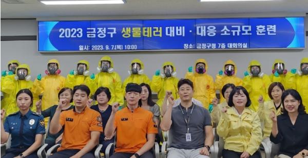 부산시 금정구 보건소는 관계기관과 함께 생물테러 대비·대응 모의훈련을 실시했다.