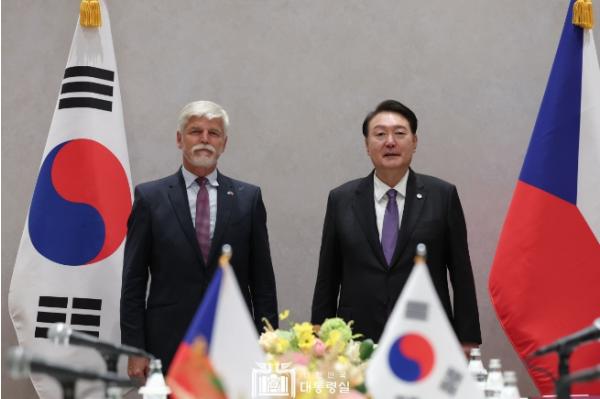 제78차 유엔총회 고위급 회기 참석을 위해 미국 뉴욕을 방문 중인 윤석열 대통령은 9월 18일 오후 '페트르 파벨(Petr Pavel)' 체코 대통령과 정상회담을 가졌다.