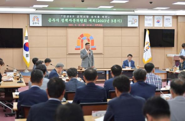 공주시는 지난 18일 시청 대백제실에서 정책자문위원회 회의를 열고 민선8기 공약 추진 상황을 점검했다.
