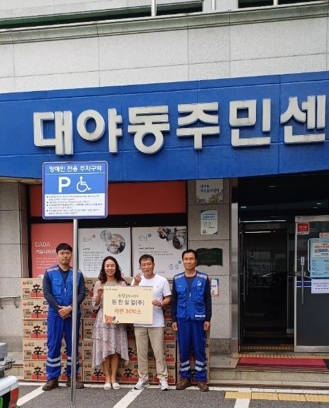 생활폐기물 수집 운반업체 원진실업(주)이 지난 19일 추석맞이 후원품으로 라면 30상자를 대야동 행정복지센터에 전달했다.