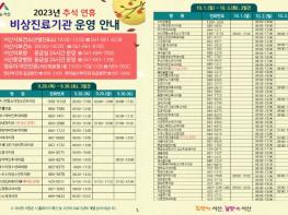이 외에도 연휴 기간 중 문 여는 병의원과 약국 안내, 당직의료기관 지도·점검을 통해 진료에 차질이 없도록 할 계획이다.