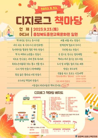 충청북도교육청 직속기관 중원교육문화원(원장 한주형)이 오는 23일 중원교육문화원 일대에서 '2023. 디지로그 책마당'을 개최한다.