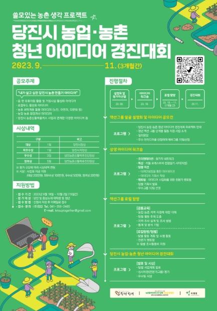 당진시와 당진시농촌신활력플러스사업추진단에서 농촌에 활력을 불어넣기 위해 농업·농촌 청년 아이디어 경진대회를 진행한다.
