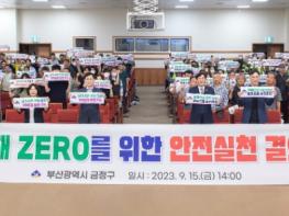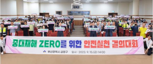 부산시 금정구는 구청 대강당에서 관리감독자, 현업 근로자들이 참석한 가운데 중대재해예방을 위한 안전 실천 결의대회와 안전보건교육을 실시했다.