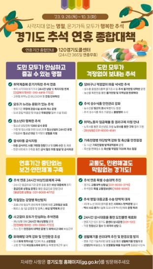 경기도가 취약계층을 포함한 모든 도민이 마음 놓고 쉴 수 있는 안전하고 편안한 명절을 위해 ‘추석 연휴 종합대책’을 추진한다.