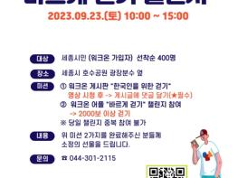 참여를 희망하는 시민은 행사 당일 오전 10시부터 오후 3시까지 세종호수공원을 방문해 2,000보 이상 걸음 수 달성과 바르게 걷기 영상 시청 후 댓글 달기 두 가지 미션을 완료하면 된다.