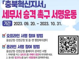 이에 군은 충주세무서 충북혁신지서 세무서 승격을 위해 주민 서명 운동을 진행하고 서명 운동 결과를 행정안전부, 국세청 등 중앙부처에 전달하는 등 승격을 위해 행정력을 집중할 계획이다.