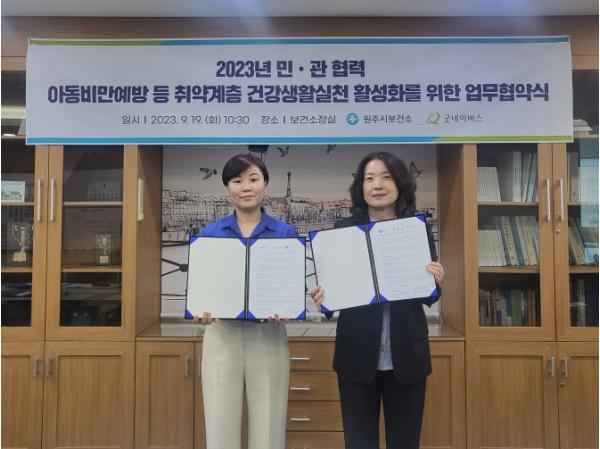 원주시보건소는 아동비만 예방 등 취약계층 건강생활실천 활성화를 위해 지난 19일 굿네이버스 강원지역본부와 업무 협약(MOU)을 체결했다.