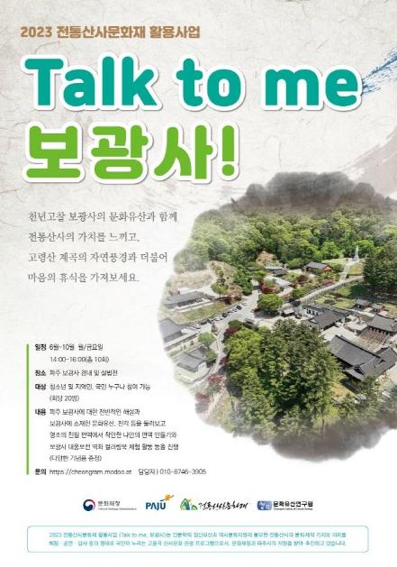 파주시는 2023년 문화재청 공모사업 ‘전통산사 문화재 활용사업’에 선정되어 파주 천년 고찰 보광사에서 사업을 추진하고 있다.