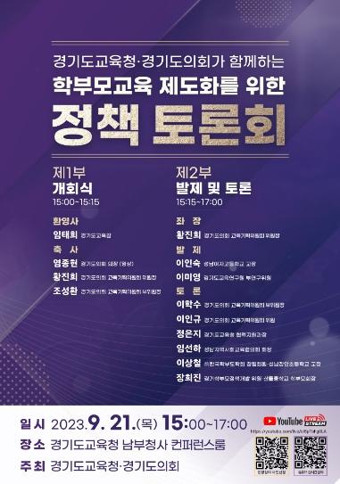 이번 토론회는 경기도의회와 공동 주관으로, 학부모교육 지원체제 구축에 대한 교육공동체 의견을 듣기 위해 마련했다.